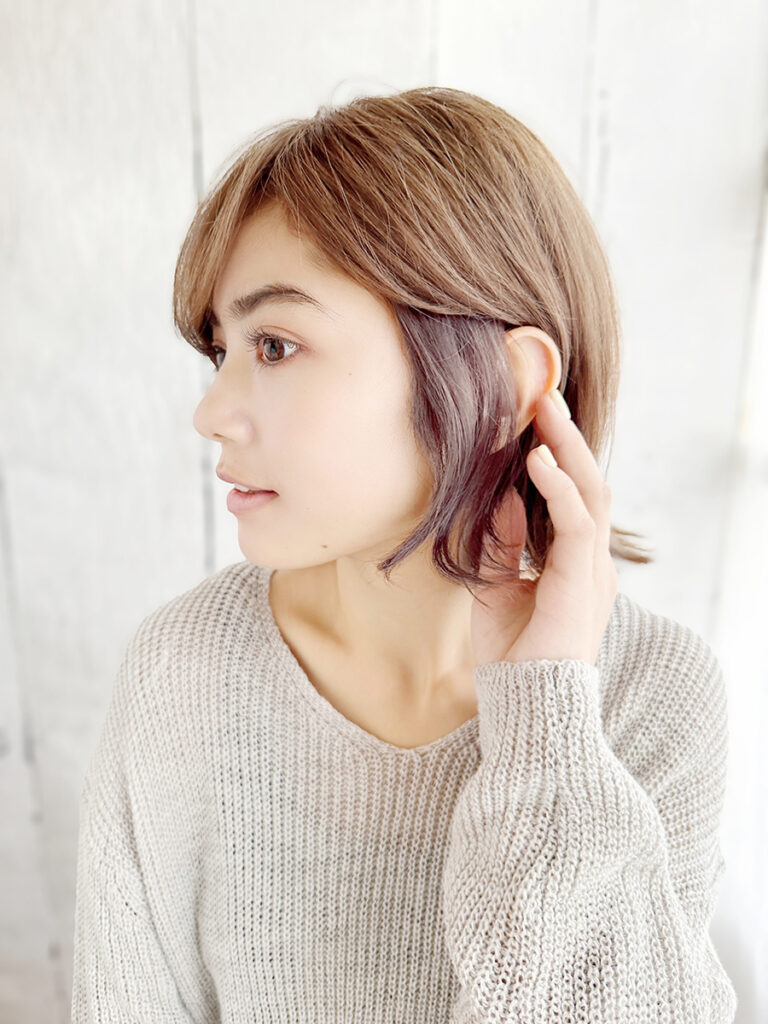 最近オーダーが多いのが、ちらっと見えるインナーカラー。髪を下ろしている時は控えめに、耳にかけたりアレンジした時に見えるのがおしゃれですよね!