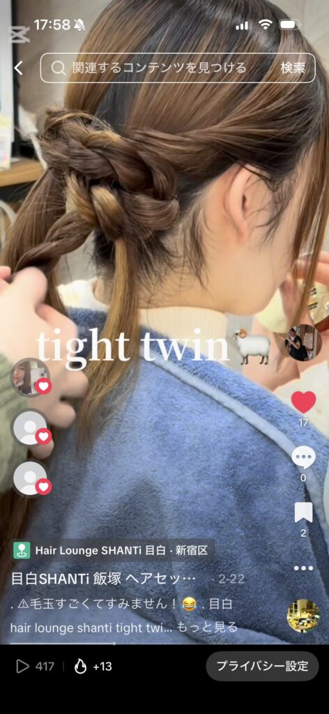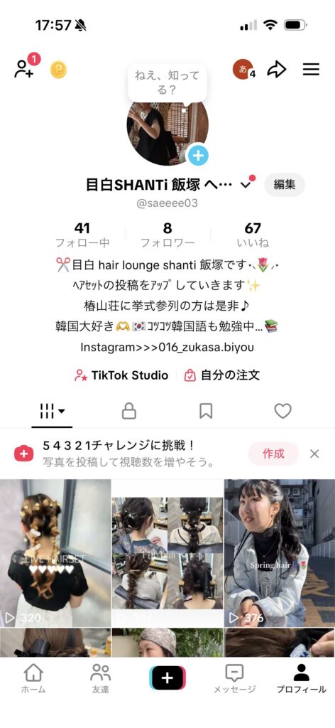 ヘアセットアカウントをTikTokでも作ってみました♪